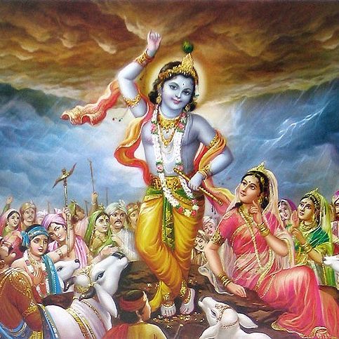 ஆயர்பாடியில் கிருஷ்ணன், வருடாந்த இந்திர விழா தடுக்கப்பட்டதால், கோபம் அடைந்த இந்திரனின் ஆணவத்தினை, கோவர்த்தன மலையை குடையாக ஏந்தி, மக்களை காத்ததன் மூலம் அழித்தான்.